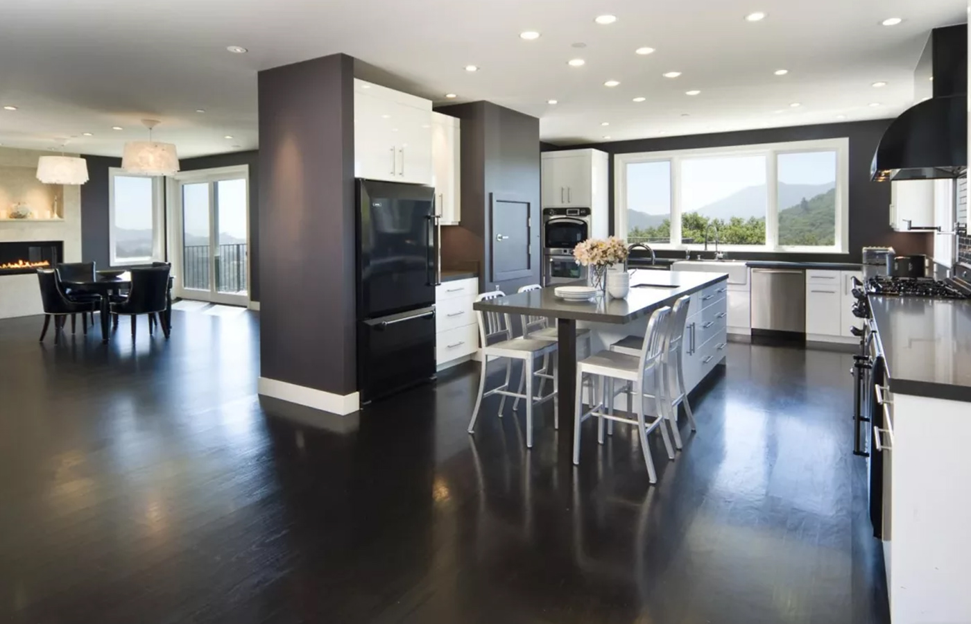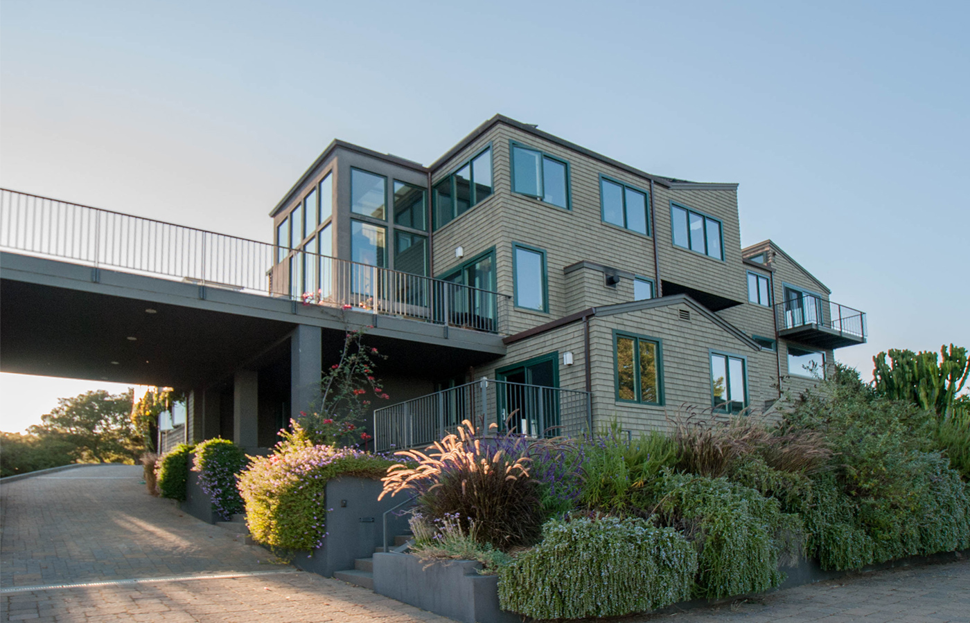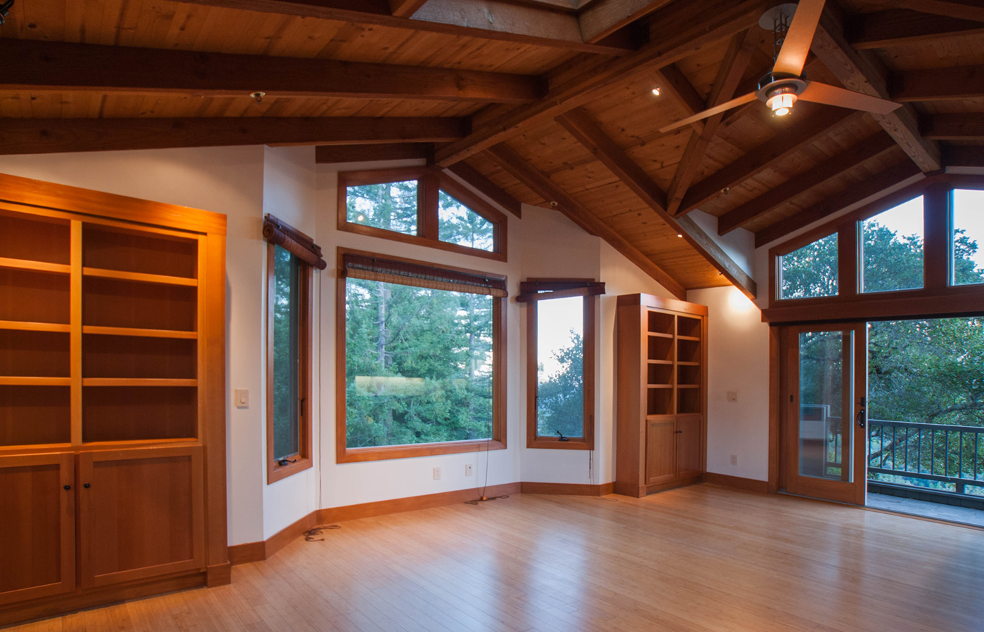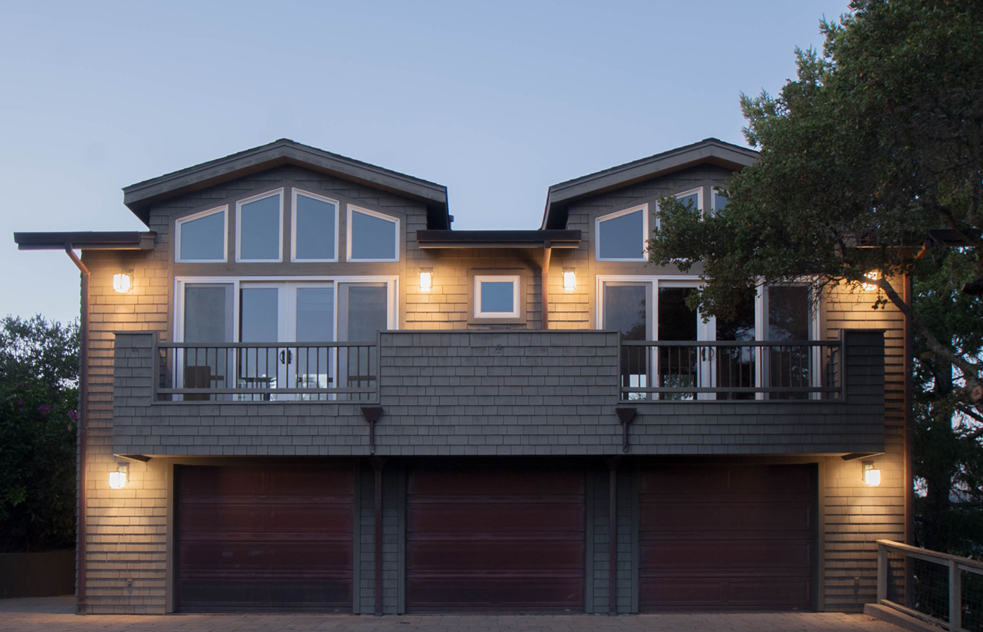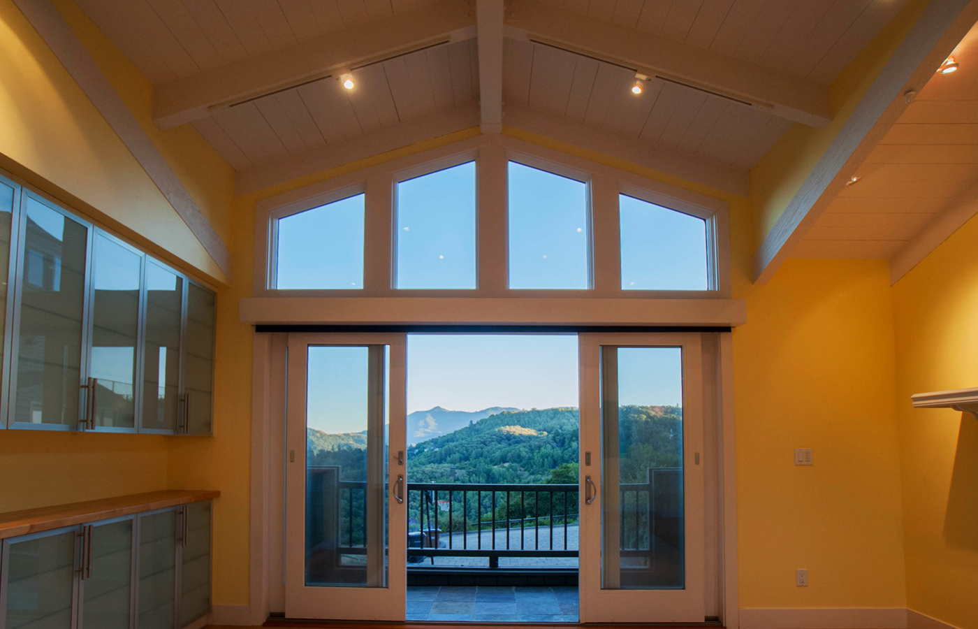 The original 1970’s design of this kit home only partly realized the beauty of this magnificent mountaintop property. Smart redesign of the interior spaces - including an award-winning kitchen - and a seamless connection to the exterior pool patio and deck let in breathtaking views of Mount Tamalpais State Park and the San Francisco Bay. A new transparent, glass-encased floating steel staircase floods the home with natural light and allows even more access to the panorama of forest and bay below. Night-time elegance was achieved with an innovative exterior and interior lighting scheme.