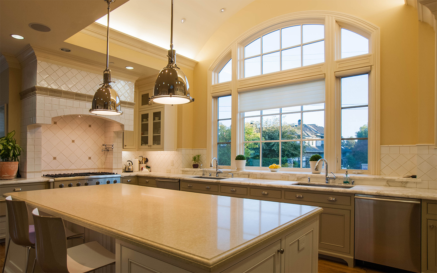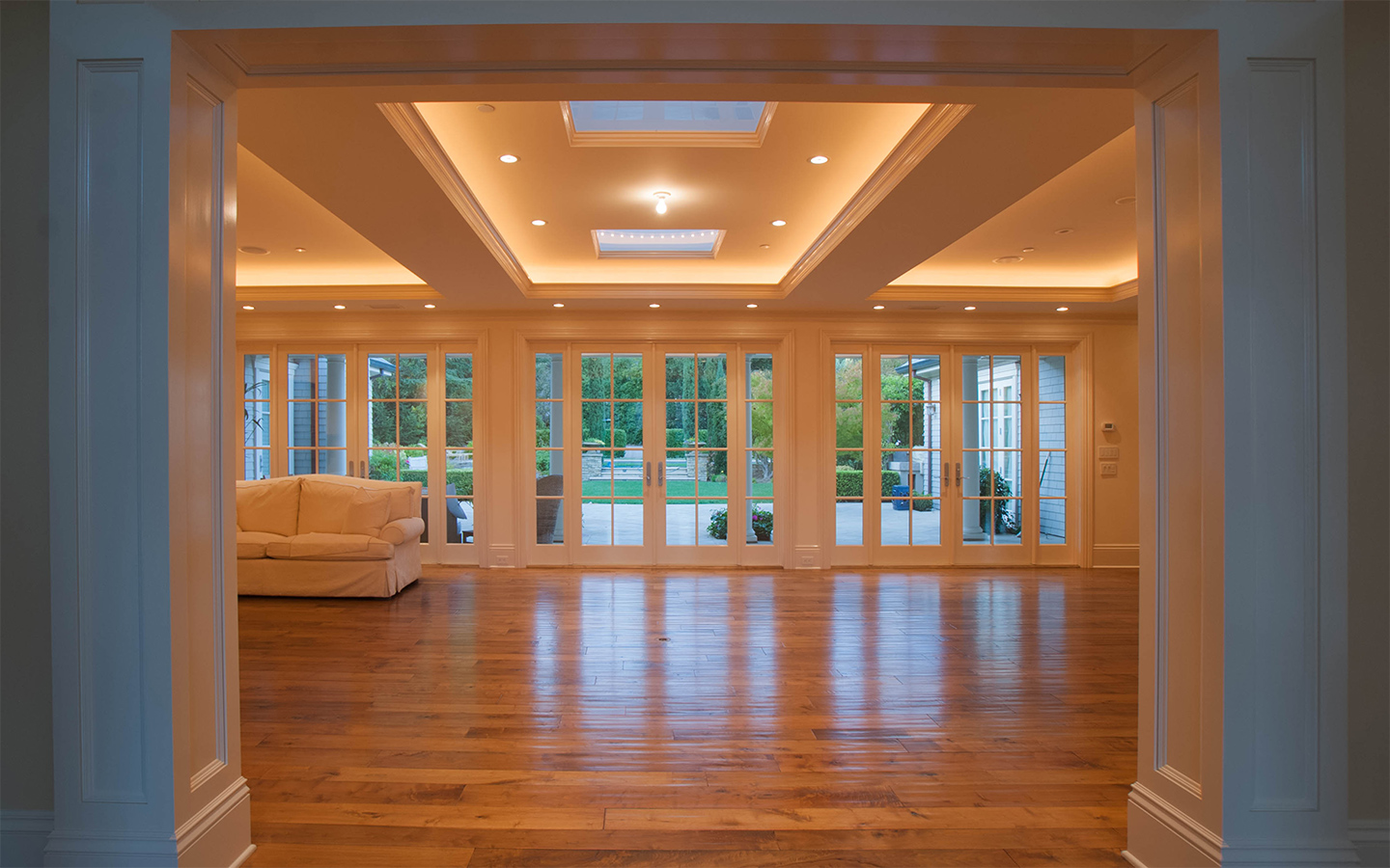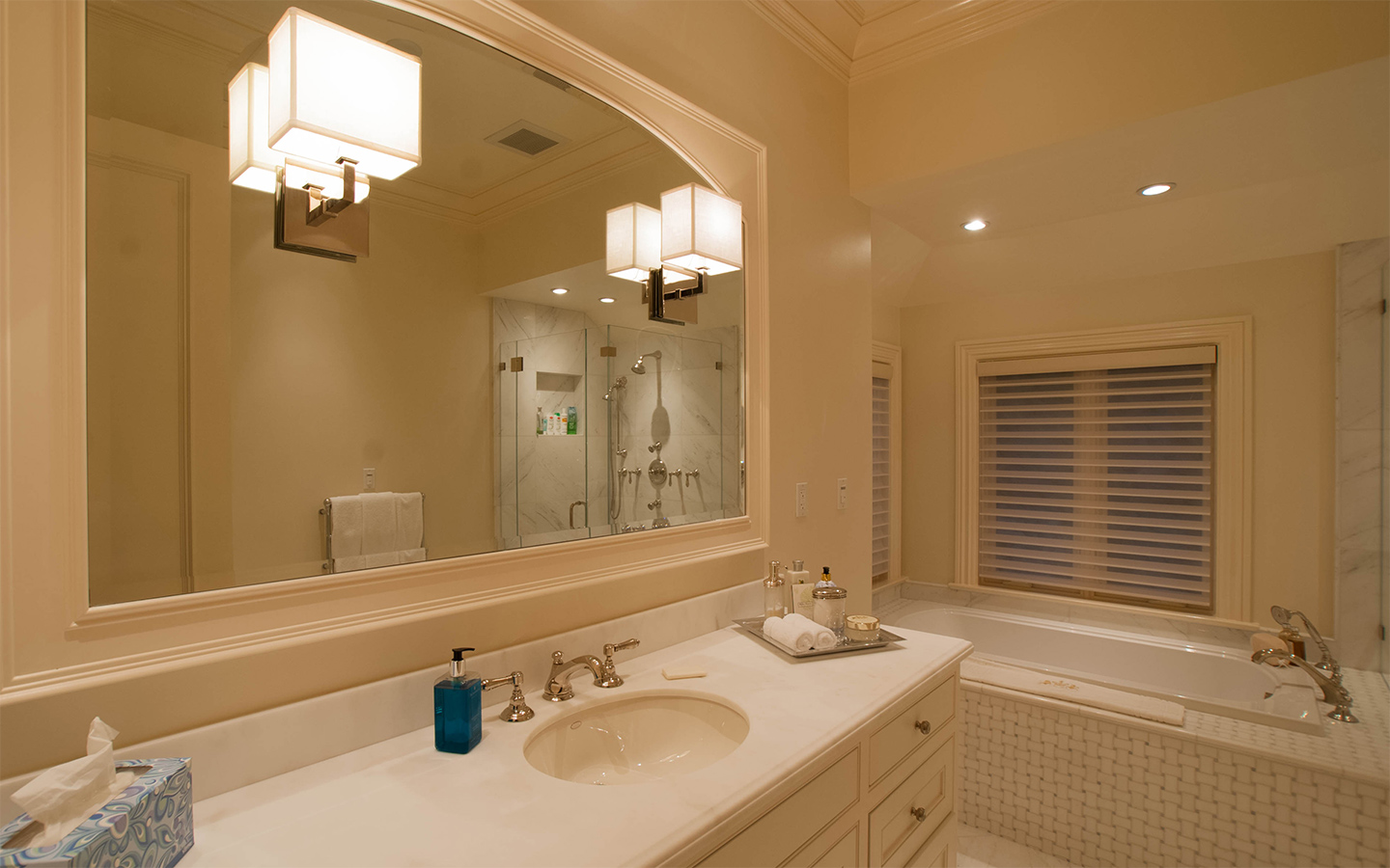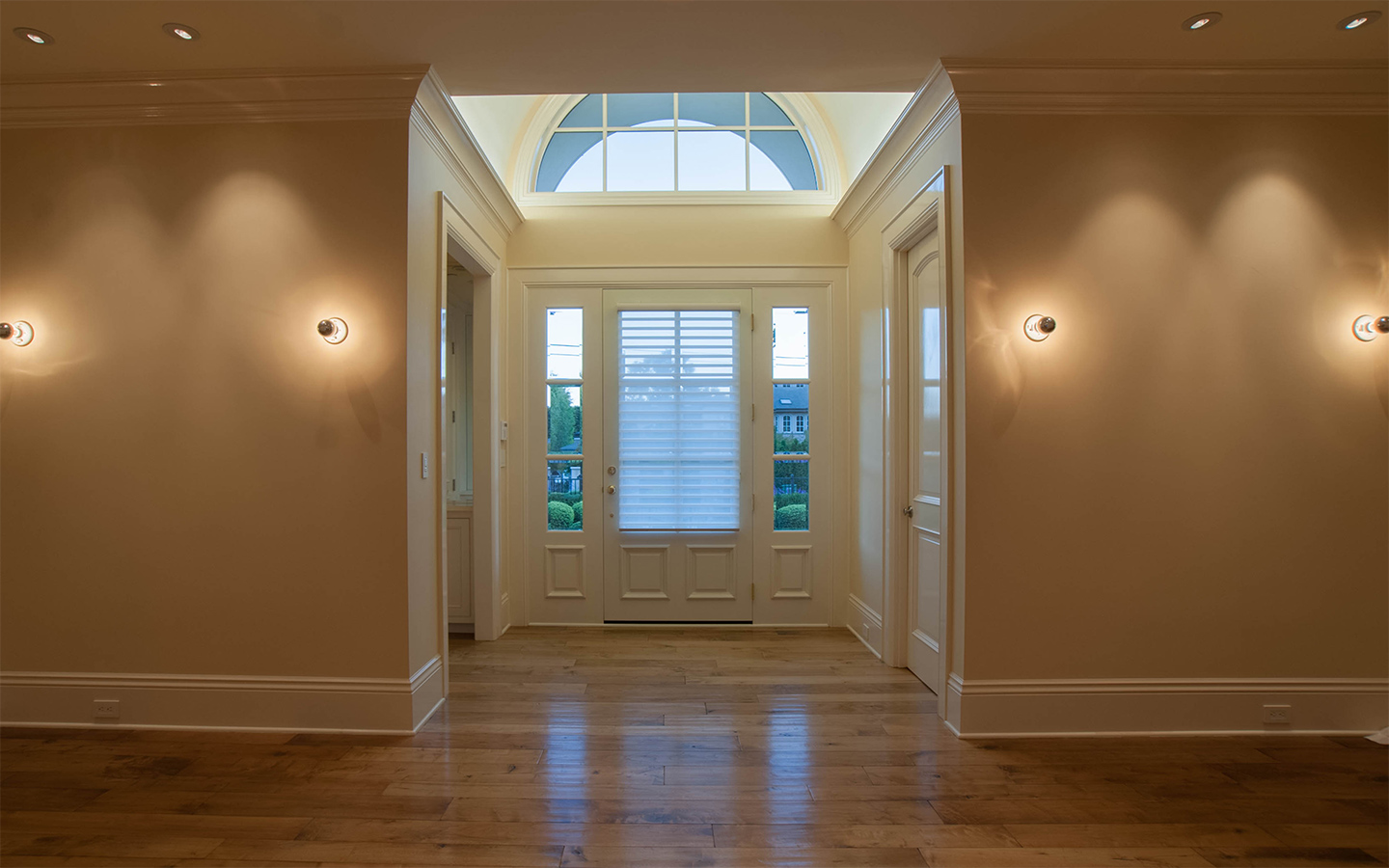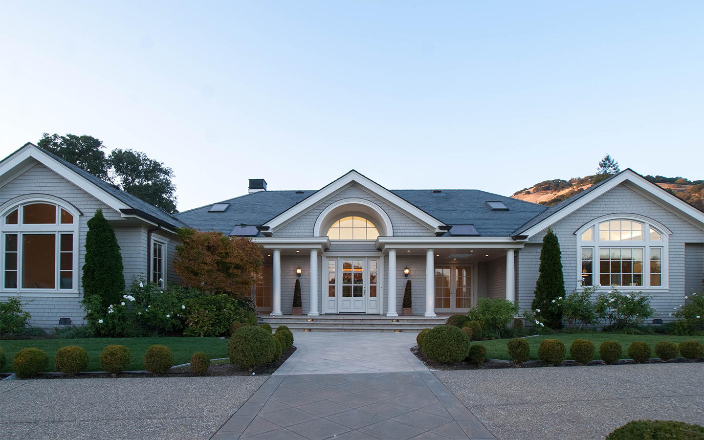 A run-down, 1950’s ranch style home on this sunny, generous, flat site was cleared to make way for a beautiful new English country style home with a grand garden, swimming pool and guest house. Large, luscious, formal spaces were designed to showcase the homeowner’s artwork and lifestyle with high ceilings, elegant windows and glass doors to bring in natural light. A creative and refined contemporary lighting scheme successfully enriches this elegant, private art gallery. Classical design notes were combined with modern sensibilities as the new floorplan takes full advantage of passive solar cooling and heating, affording all public rooms views of the beautiful garden and pool area.
